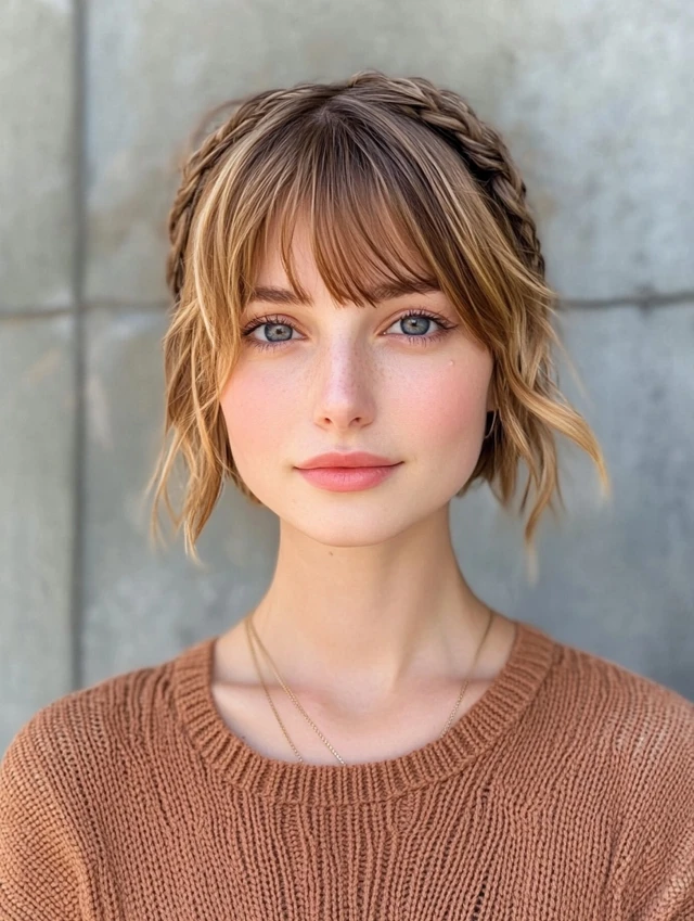 Want a festival-ready or romantic look? Pair curtain bangs with soft braids woven into long hair.