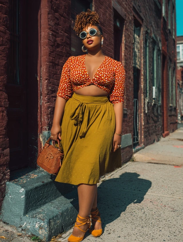✅ Embrace Color & Prints: Curvy doesn’t mean boring. Bright hues and bold patterns are your friends.