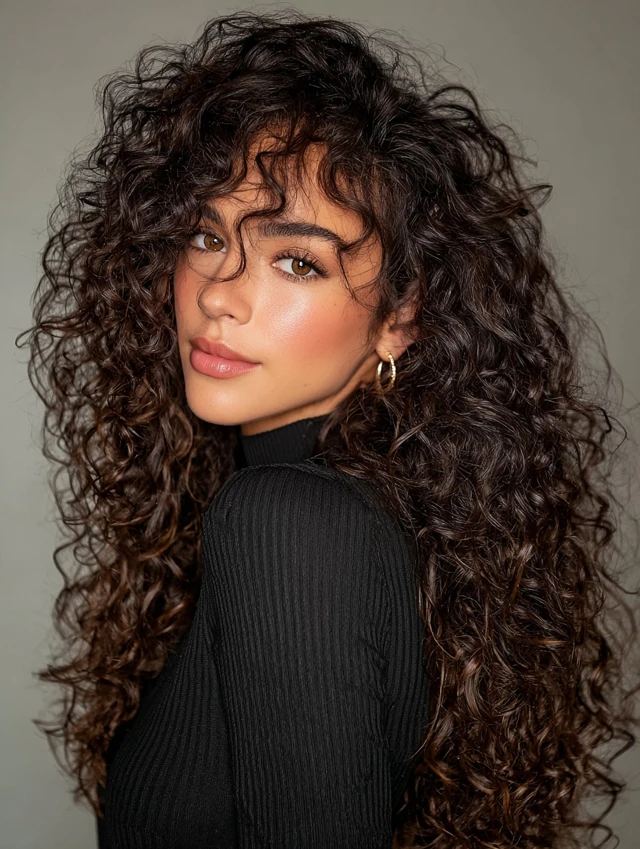 Why It Works: Layers give movement and prevent bulk, making your long curls look light and airy.