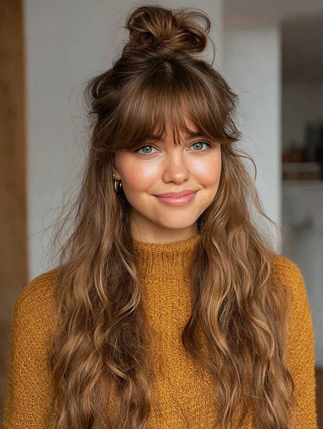 Why It Works: Adds volume at the crown while keeping the length flowing.