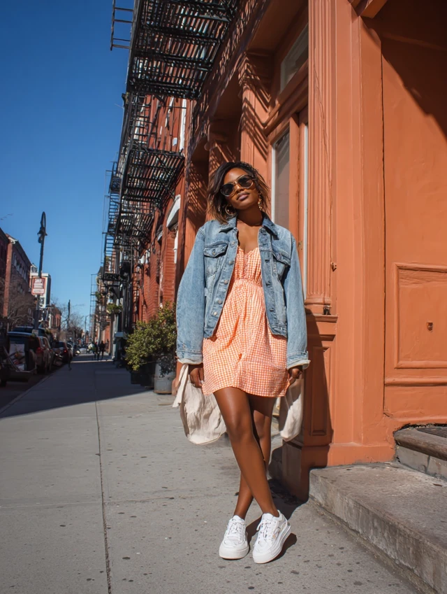 4. Denim Jacket + Sundress + Slip-On Sneakers