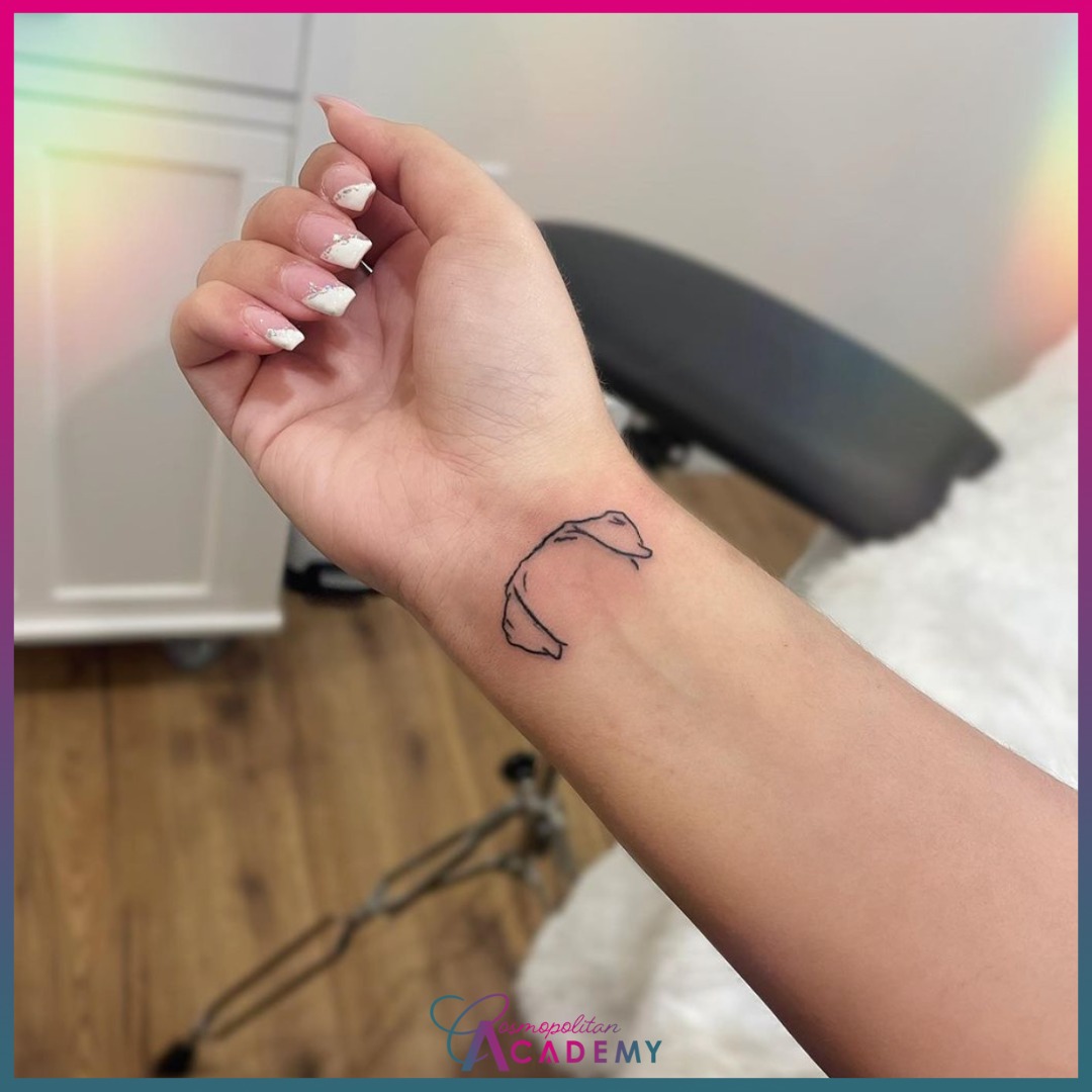 This tiny wrist tattoo captures elegance in simplicity with its delicate line art design. Placed on the inner wrist, it reflects a subtle yet meaningful choice for body art. The fine strokes form a fluid and abstract outline, making it perfect for someone who values minimalist expression.