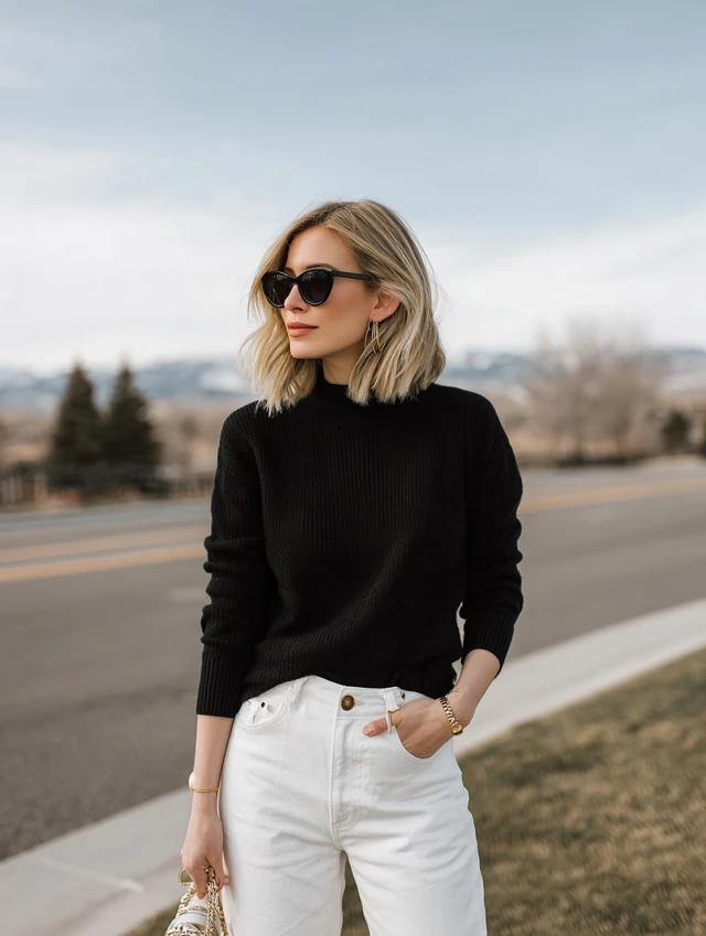 Styling a black sweater is about balancing texture, proportion, and mood: