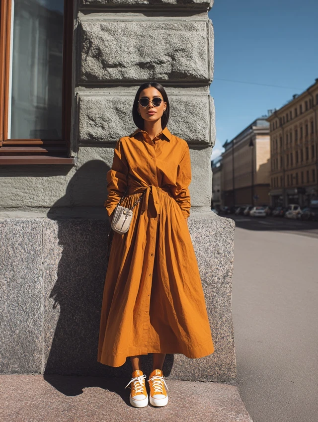 1. Cotton Long Dress + Sneakers