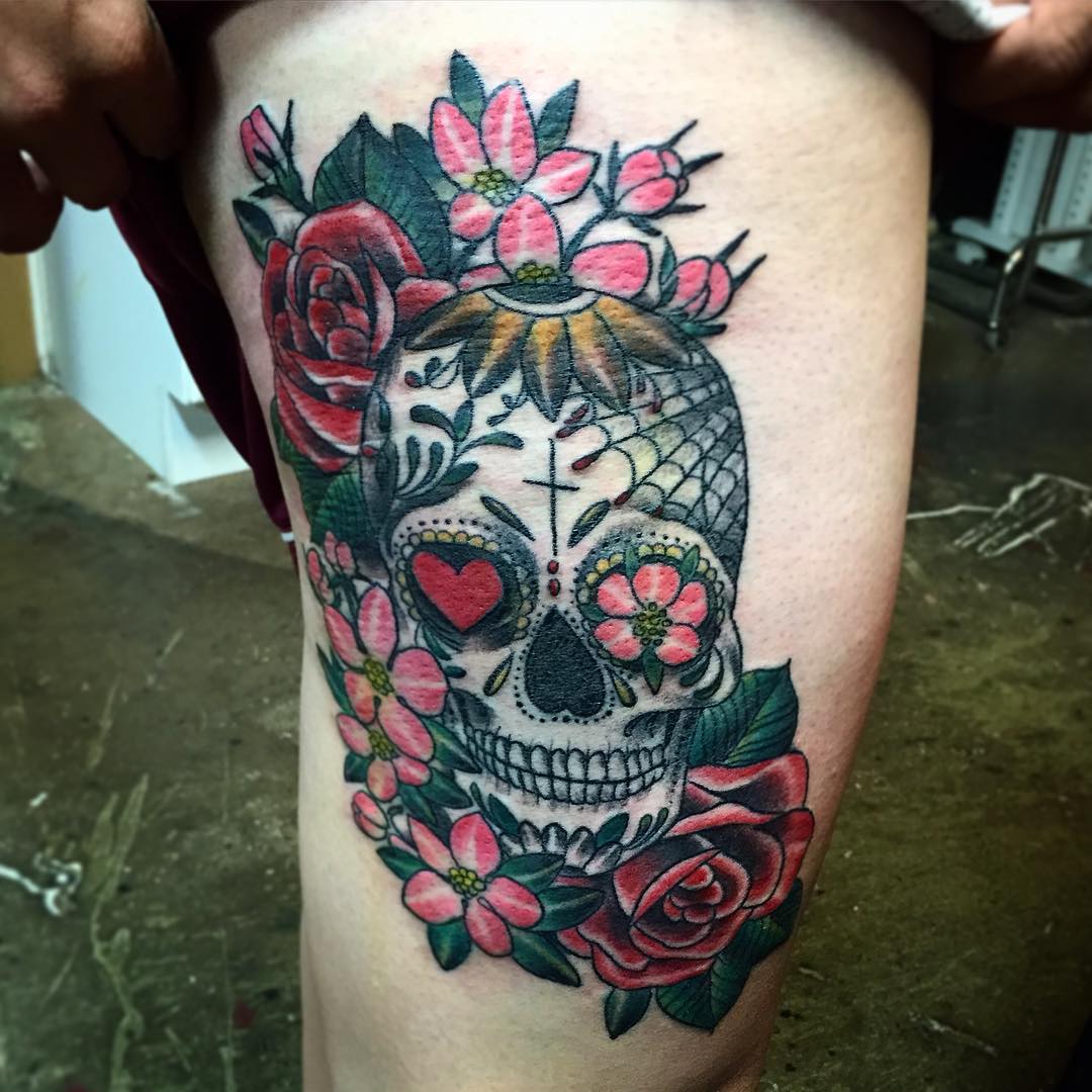 Placement depends on size and detail—larger pieces shine on the thigh, back, or arm, while smaller sugar skulls work beautifully on the wrist, ankle, or shoulder.