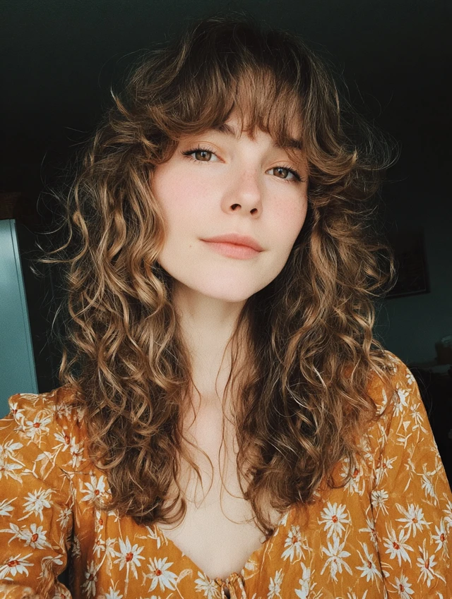 Why It Works: Soft curls and curtain bangs are a match made in heaven—they frame the face while keeping things effortlessly chic.
