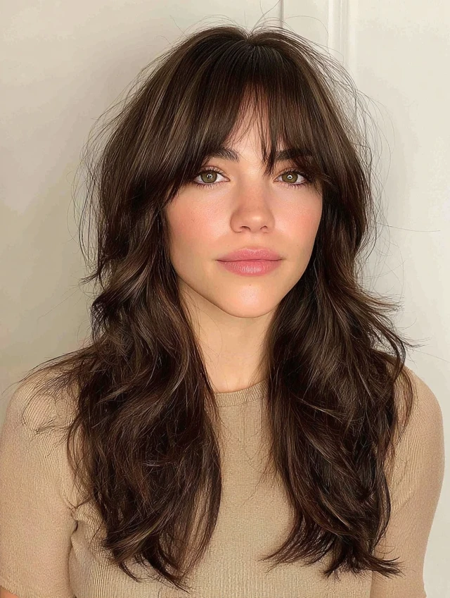 Why It Works: Curtain bangs seamlessly blend into soft curls, framing your face for a youthful, modern look.