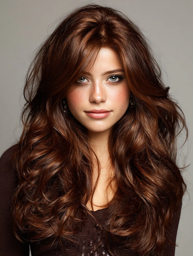 Chestnut brown is a classic warm shade, adding shine, depth, and subtle richness to medium or long hair.
