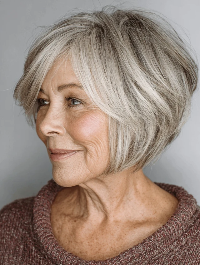 Short hairstyles look stunning with soft texture—think light layers, gentle waves, or tapered sides. Color can elevate the whole look: natural grays, warm blondes, soft browns, or delicate highlights add depth without overpowering.