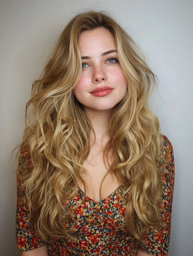 Loose, flowing waves create softness and natural volume. A center part balances facial features and frames the face beautifully.