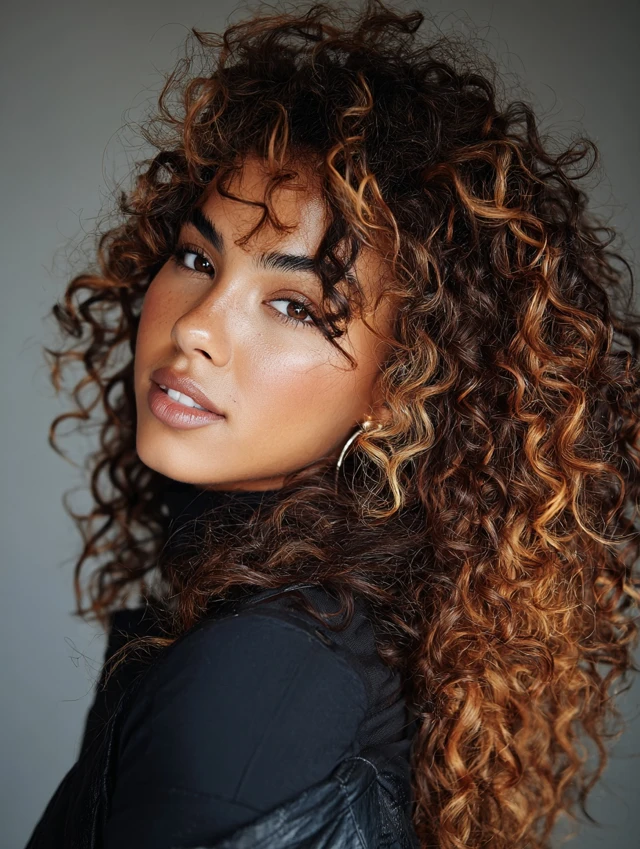 Caramel highlights enhance curl definition and add stunning depth and dimension to textured hair.