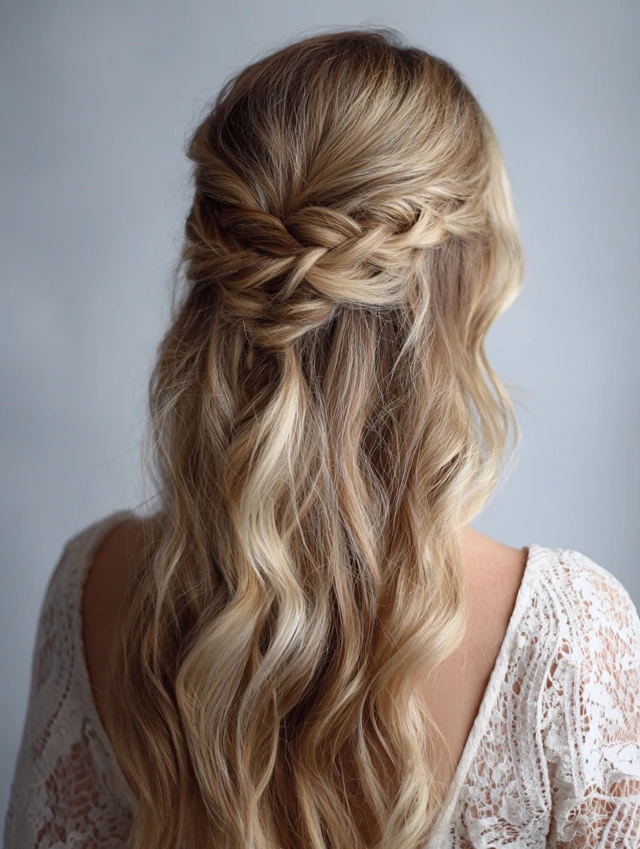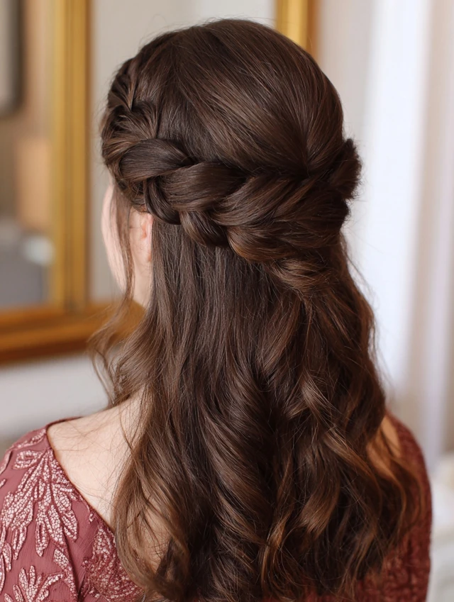 Pull the top section of hair back and twist or braid, leaving the rest down.