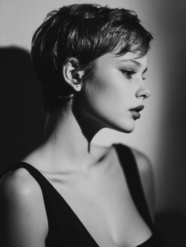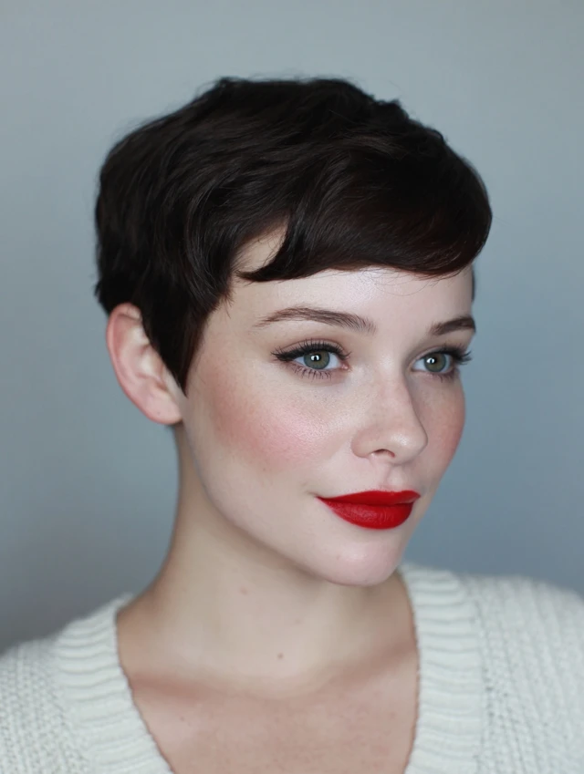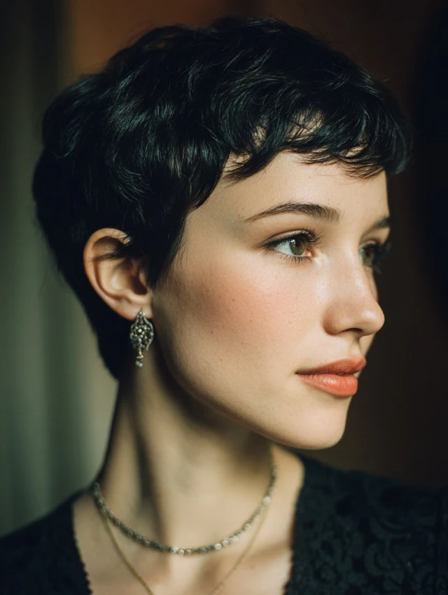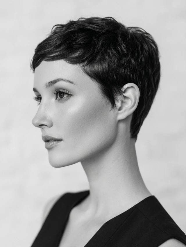 Short, sleek, or textured pixie that highlights the face shape.