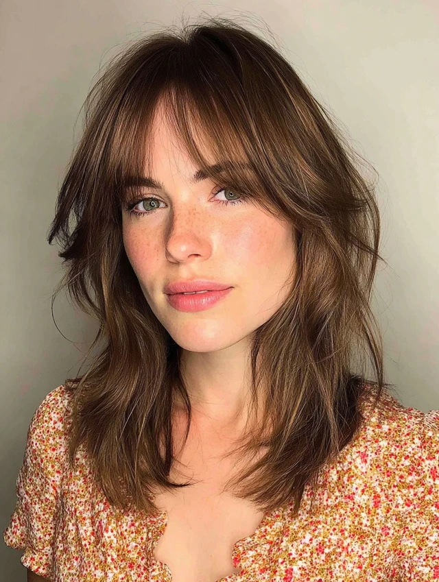 3. Shoulder-Length Hair with Curtain Bangs