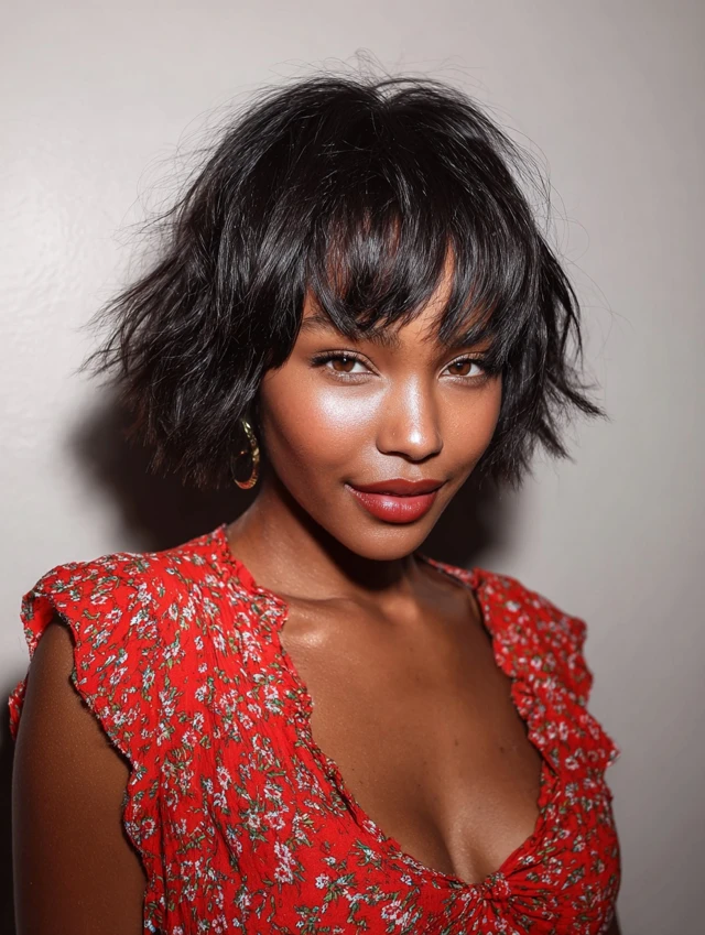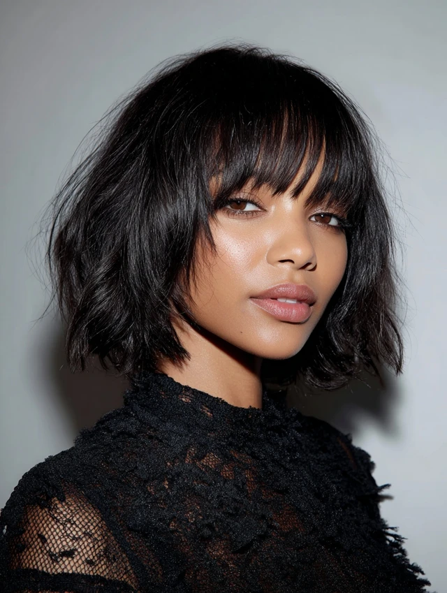 Bob with bangs hairstyles for Black women are versatile, flattering, and effortlessly chic. Whether sleek, curly, textured, or layered, adding bangs elevates the bob and frames the face beautifully.