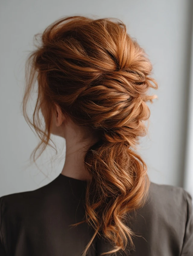 - Twist small sections before gathering into a ponytail