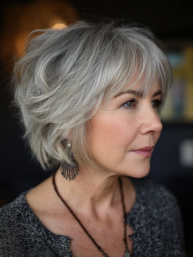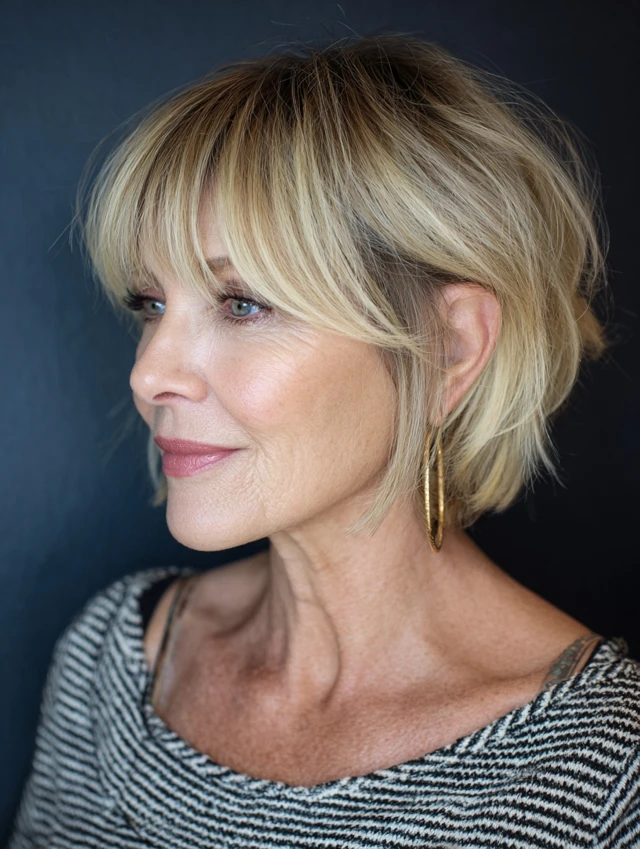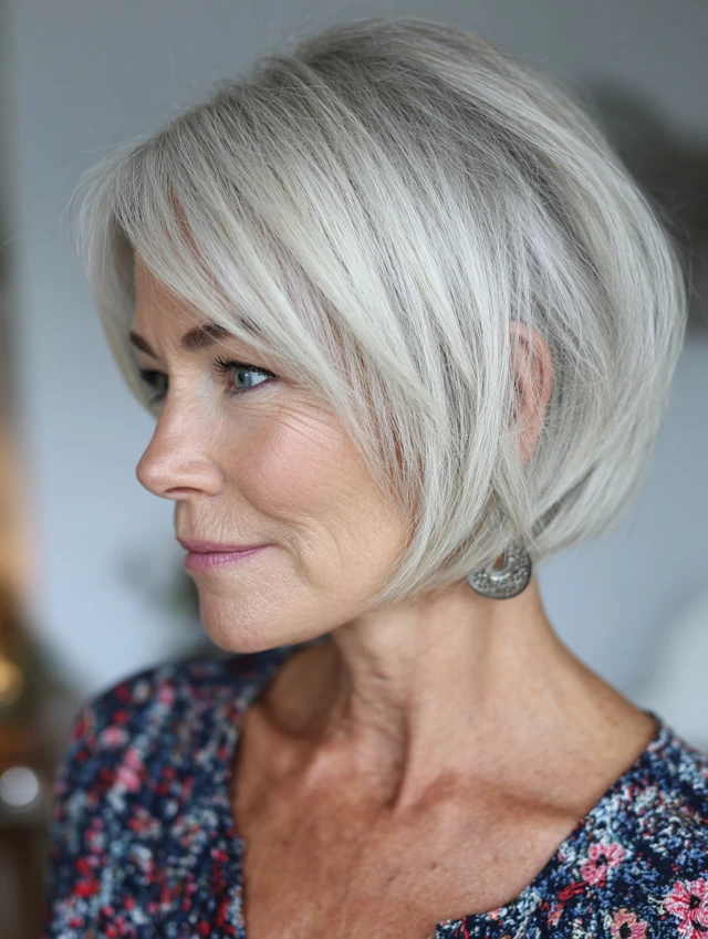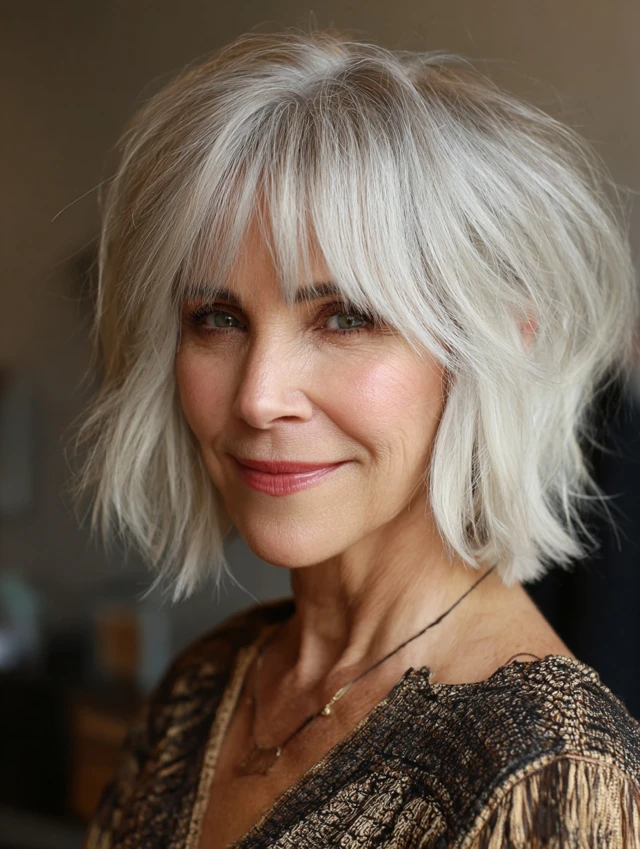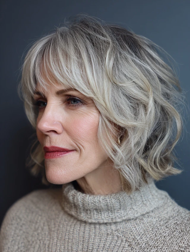 A layered bob with bangs over 50 is timeless, flattering, and versatile. It adds softness, volume, and modern style while enhancing natural beauty — perfect for women embracing elegance at any age.