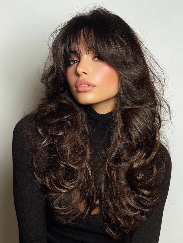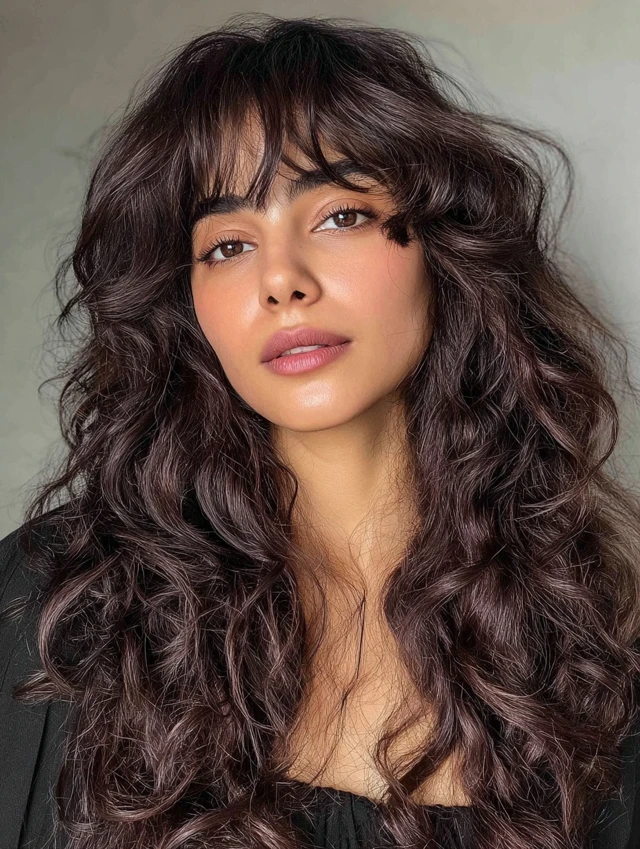 Long curly hairstyles with bangs are elegant, versatile, and full of personality. They combine volume, softness, and structure, giving you a look that is flattering, youthful, and chic every day.