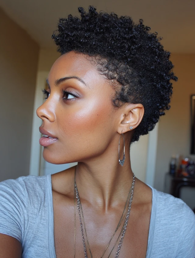 Soft curls or coils in a pixie cut create a chic, feminine style.