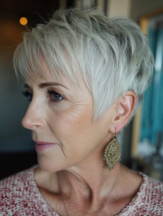 A soft pixie is light, flattering, and timeless, giving a youthful yet elegant look.