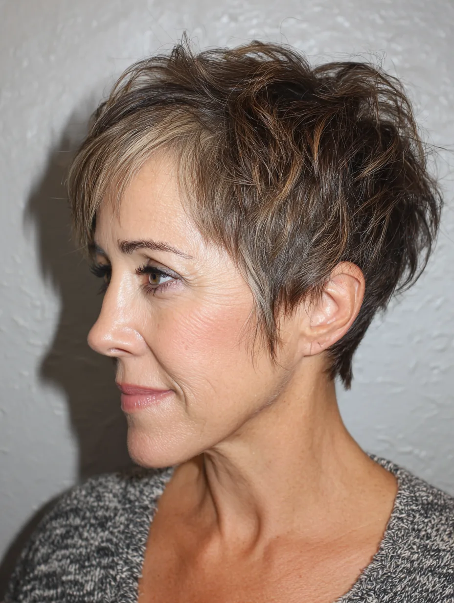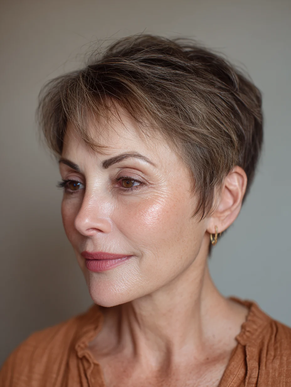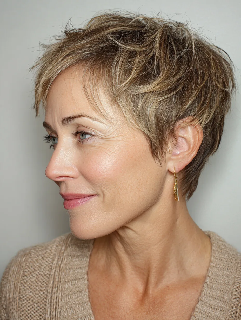 These pixie haircuts also support aging hair needs without extra effort. Lighter layers reduce bulk while improving movement and lift. Shorter lengths dry faster and style easier, which matters with busy routines. With the right cut, hair looks intentional even on low effort days.