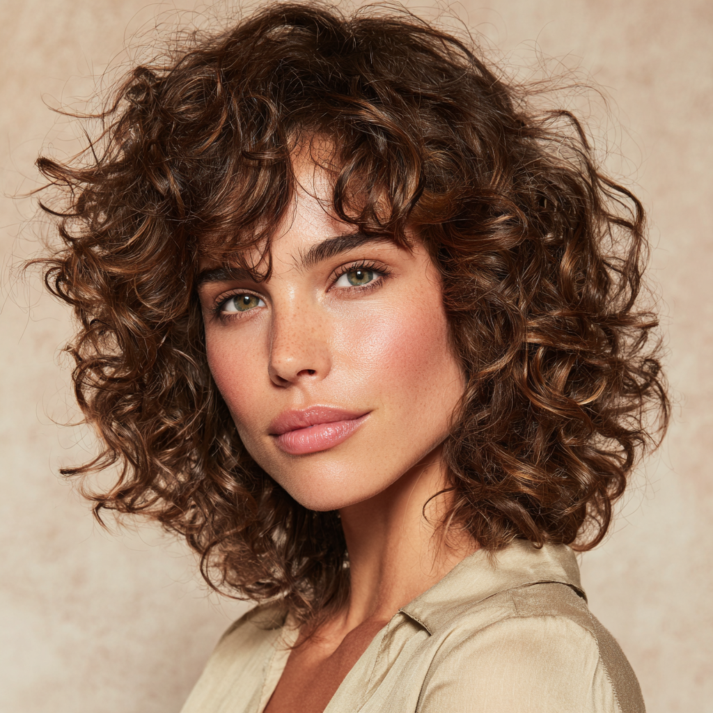 This style shapes curls without thinning them too much. Layers create definition while preventing the triangle effect. It works best for naturally curly or coily thick hair. Face framing layers highlight cheekbones and eyes.