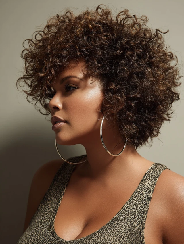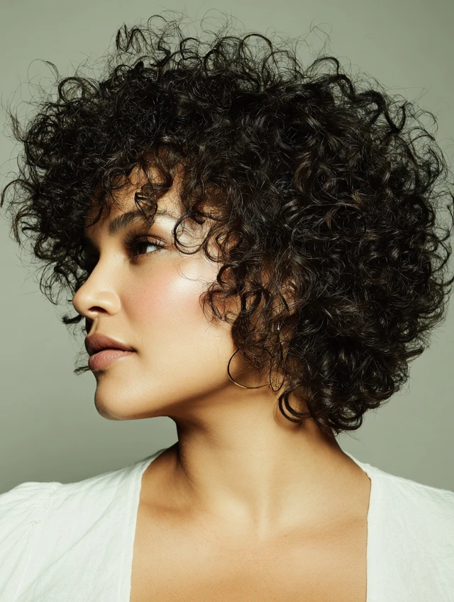 A curly short crop highlights natural texture while keeping the shape structured. Layers help curls sit well without bulk at the sides. This style keeps the look light and defined.
