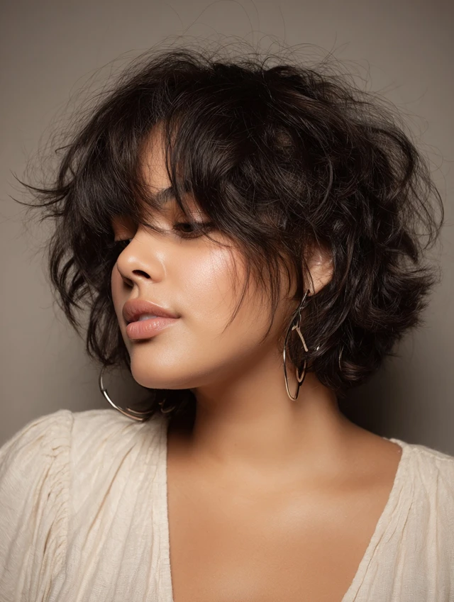 A textured short bob sits around the jaw or chin and uses layers to create softness. Texture prevents the cut from looking boxy and helps frame the face naturally. This style feels polished but relaxed.