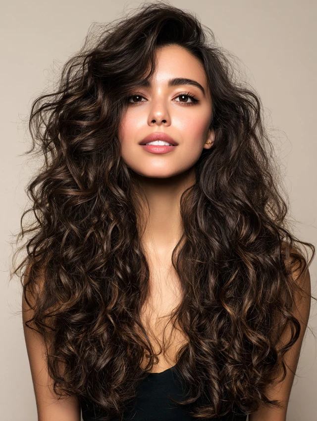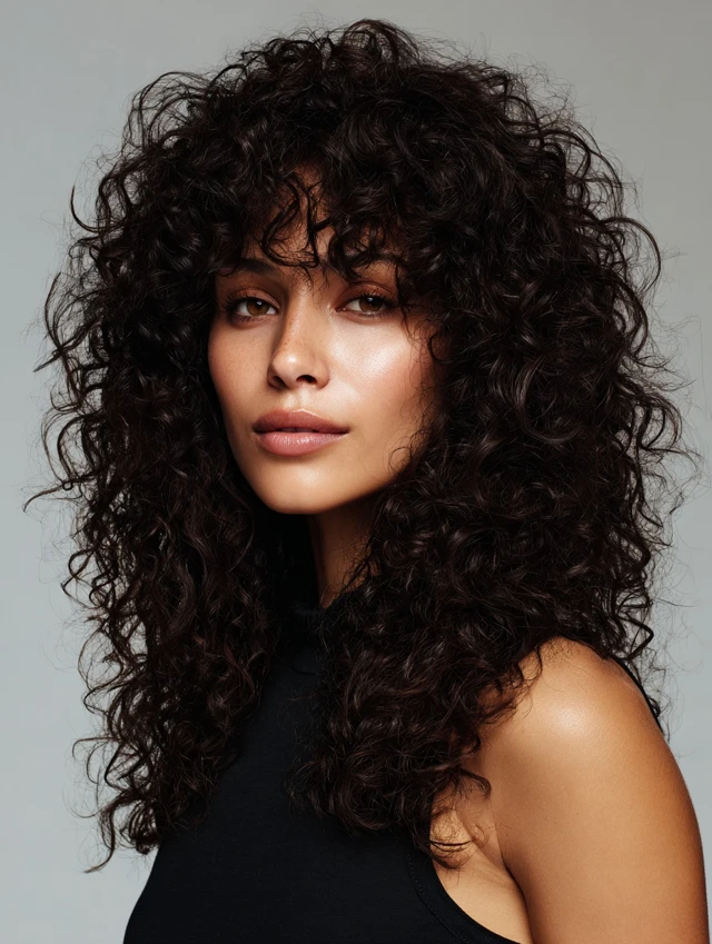Curly long shags maintain volume and shape while preventing curls from becoming heavy or bulky. Layers add bounce and softness.