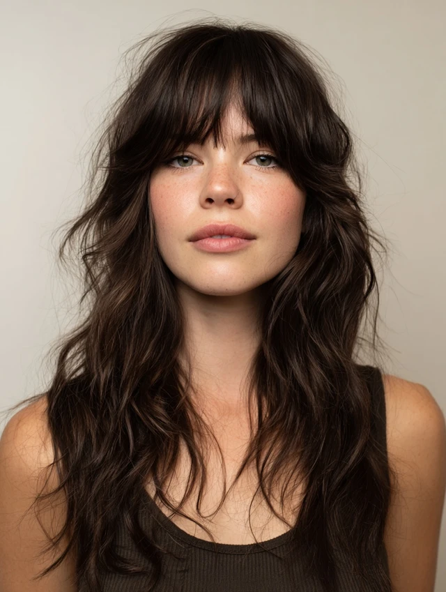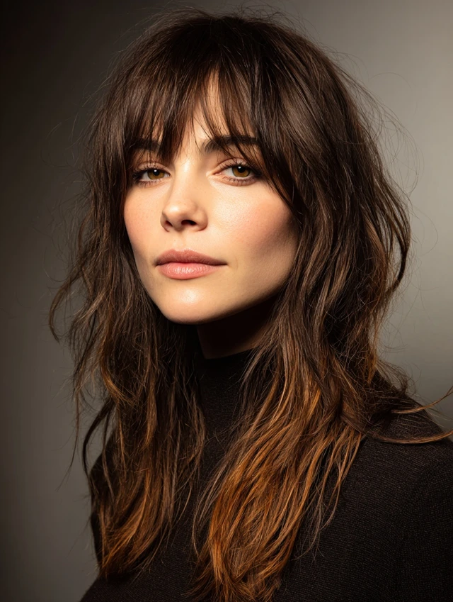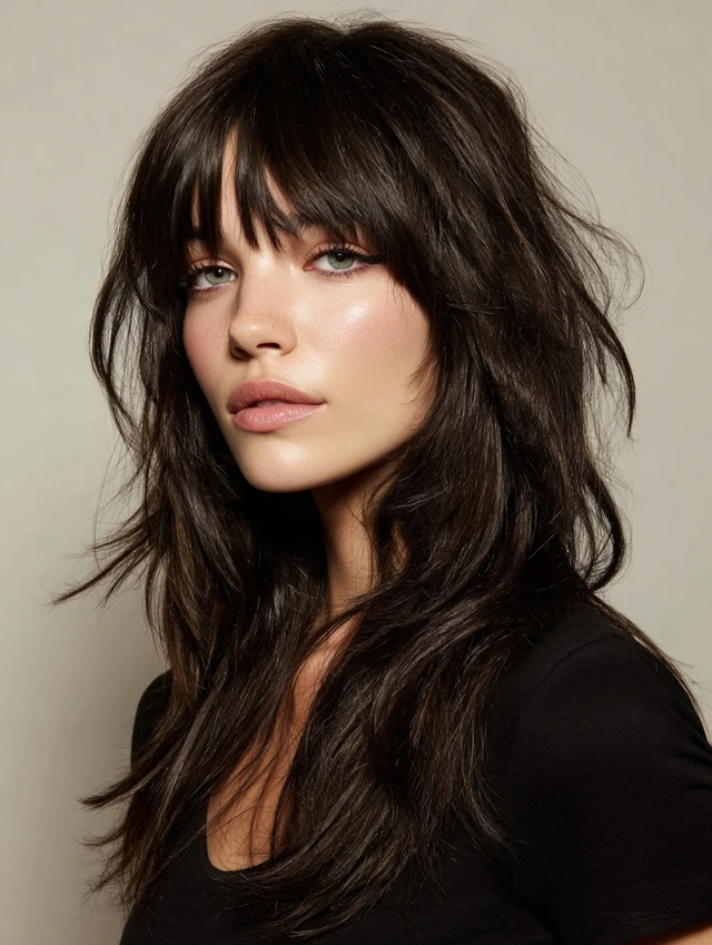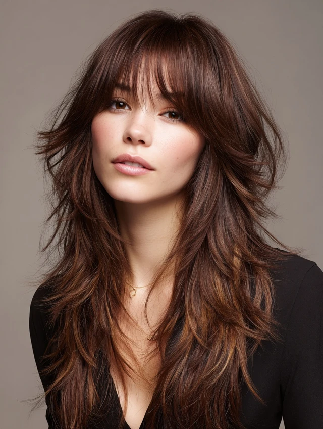 Layered Long Shag with Curtain Bangs
