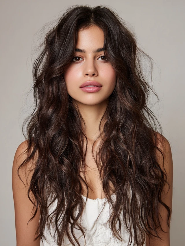 A wavy long shag adds natural texture and volume. Loose waves enhance layers, giving hair a fuller, more dynamic look.
