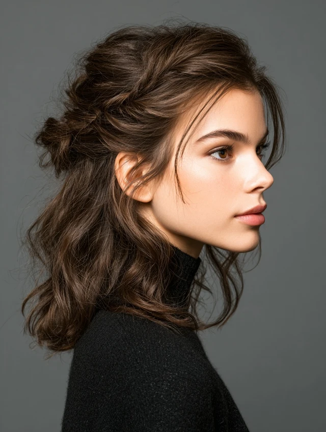 It suits oval, round, and heart-shaped faces. Works well on straight, wavy, or slightly curly hair. Styling is simple with pins and a light texturizing spray. Perfect for casual outings, dates, or informal gatherings.