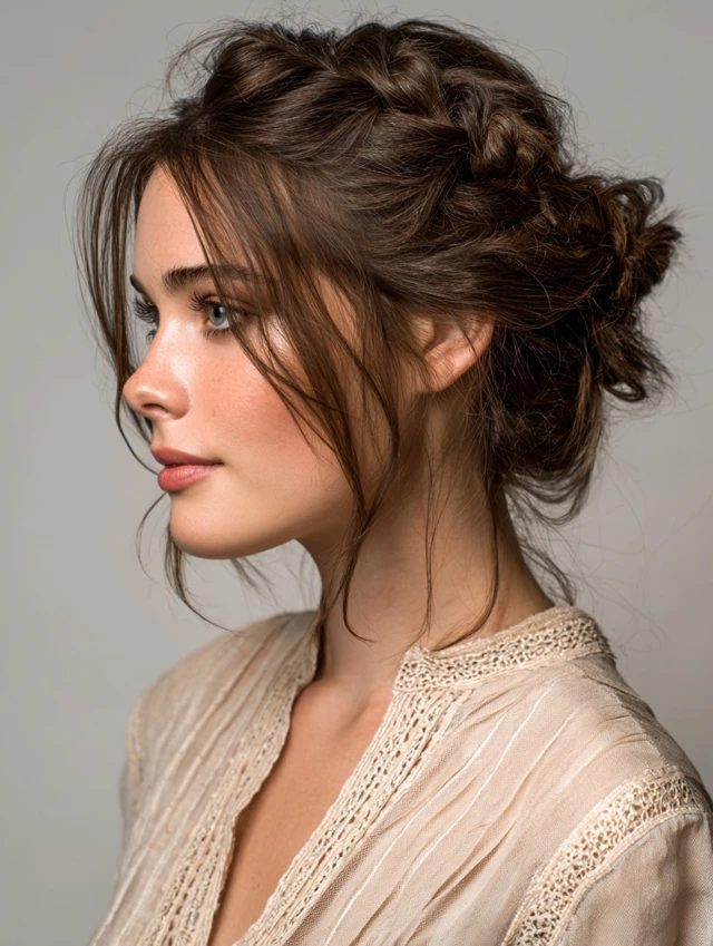 Braids add texture and visual interest to medium-length hair. Whether a side braid, crown braid, or braided bun, this style feels intricate without needing long hair.