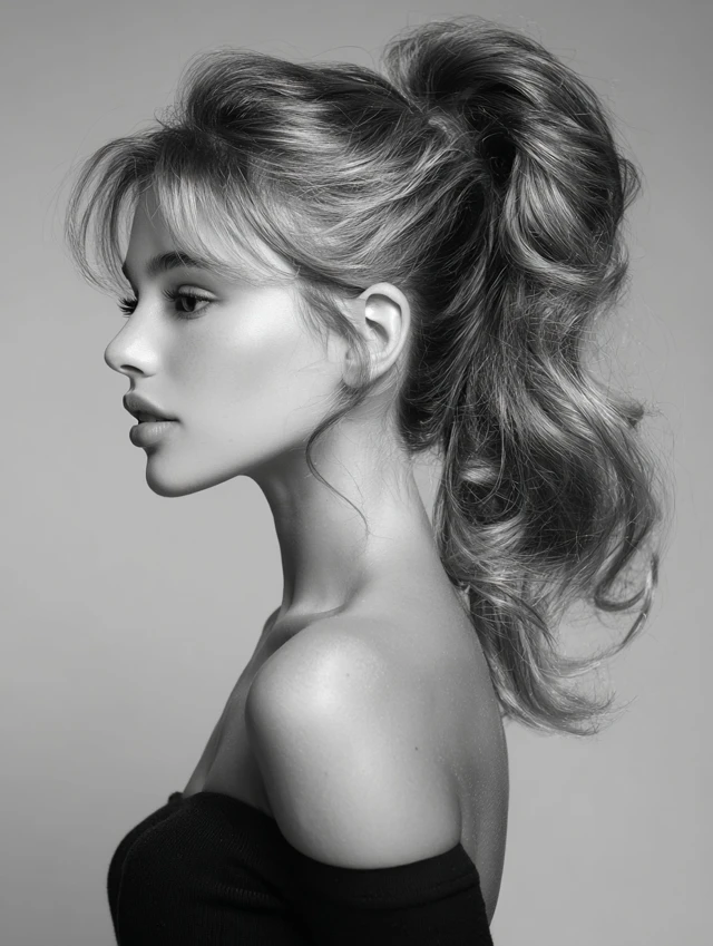 A medium-length hair ponytail can be styled into a voluminous updo with teased crown sections. The added lift balances the face while keeping hair secure.