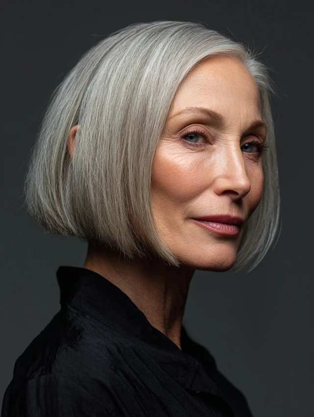 A blunt bob keeps ends full, giving thin hair the appearance of density. Chin-length adds lift to the face and works well for oval or longer face shapes. The clean lines deliver a modern, structured look without appearing wispy.