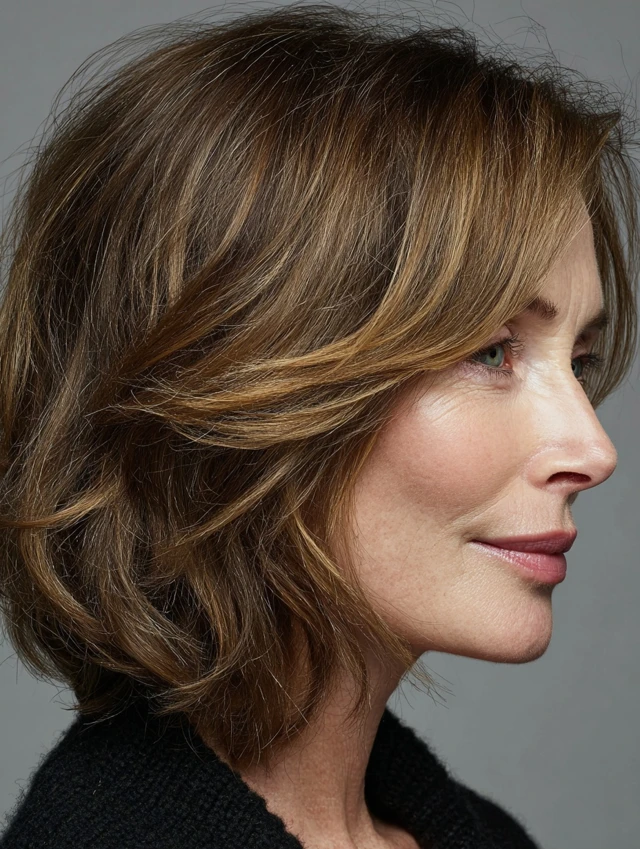 Hairstyles for thin hair for women over 50 focus on structure rather than density. Strategic layering builds movement while keeping the ends full. Lengths are chosen to prevent hair from pulling downward. This creates lift at the crown and sides, where thinning shows most. The result looks balanced instead of sparse.