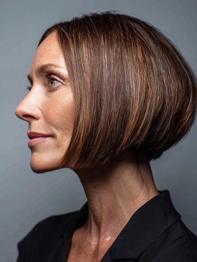 This style suits straight or slightly wavy hair. Styling is minimal: a flat iron or blow-dry keeps it sleek. It’s perfect for women who want a polished, low-maintenance cut that holds shape throughout the day.
