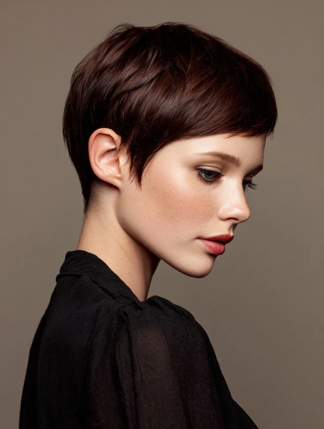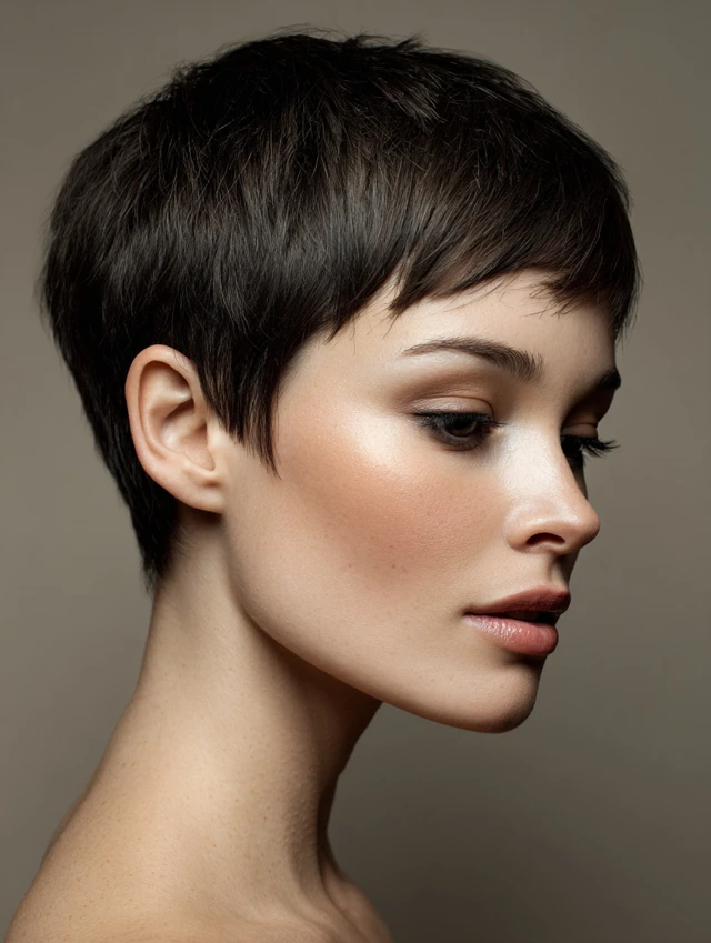 The classic pixie cut is timeless and incredibly low-maintenance. It removes weight, keeps hair out of the face, and highlights facial features. This cut suits oval, heart, and square faces, emphasizing cheekbones and jawlines.
