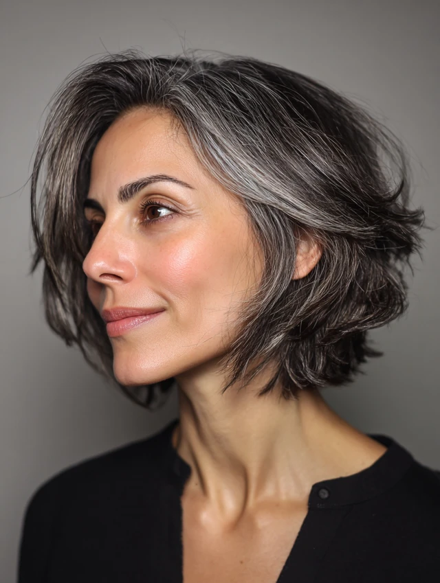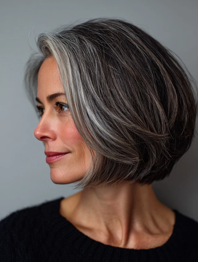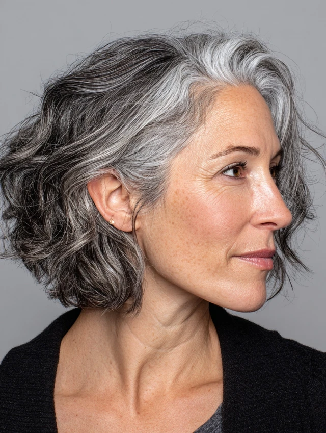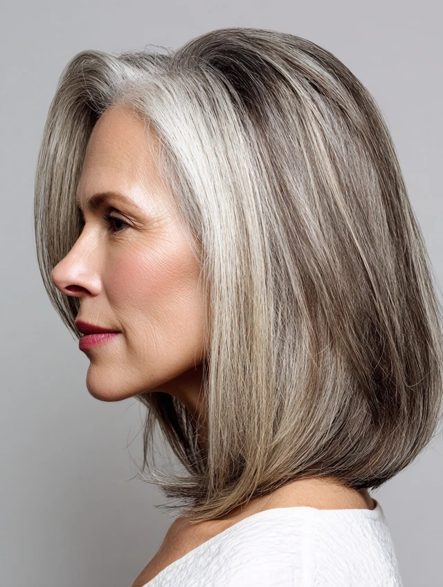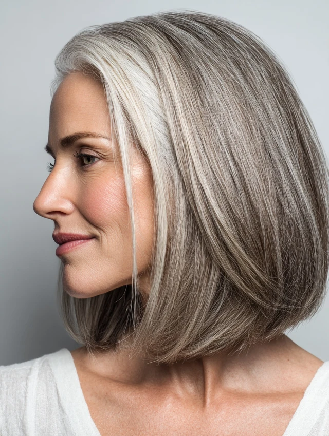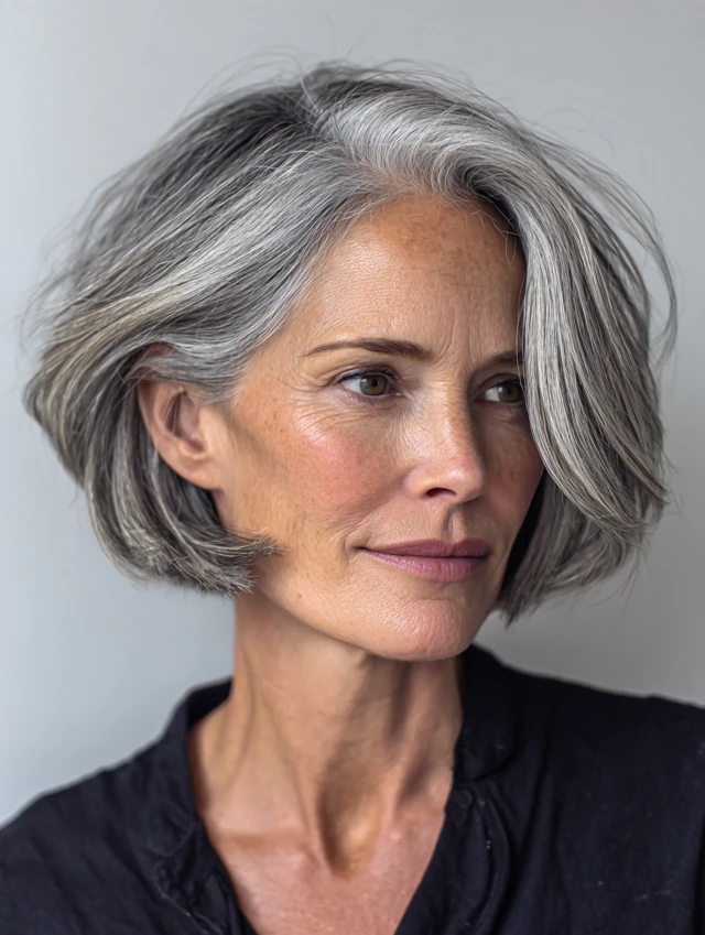 Best for short to medium hair and straight or wavy textures. Suits mature face shapes well. Styling is minimal, and upkeep is low. Ideal for women embracing natural gray with a polished finish.