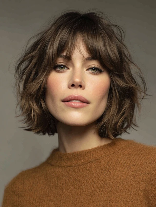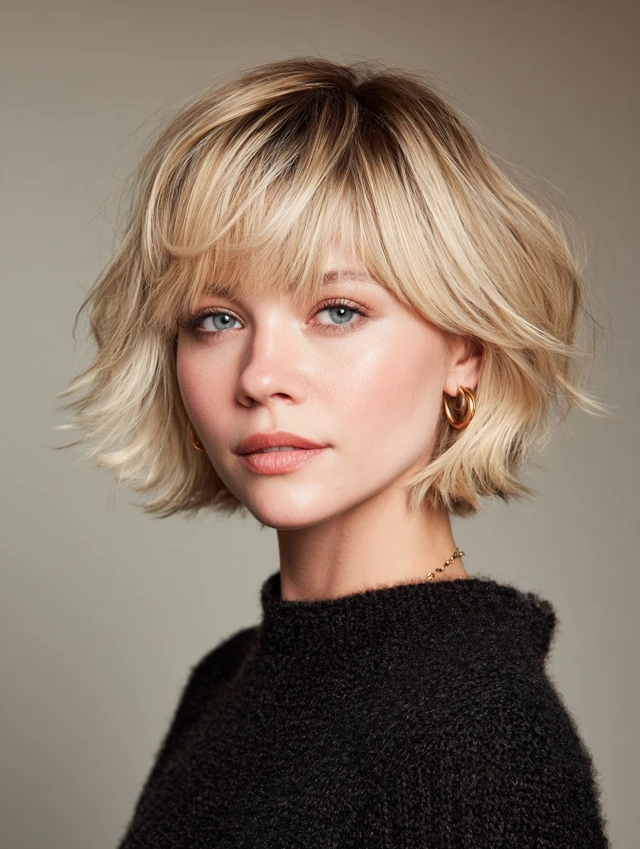 Layered Short Bob with Wispy Bangs