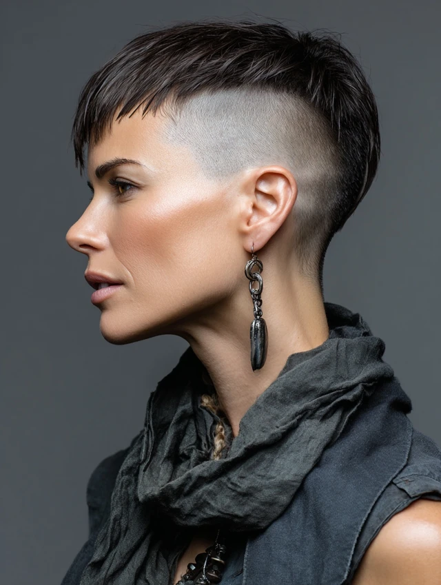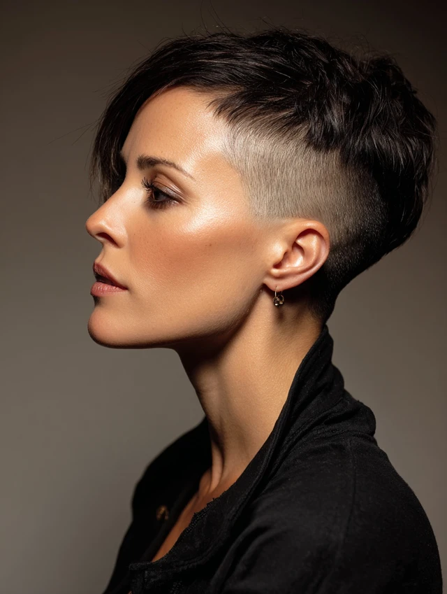 A shaved side pixie combines boldness with modernity. One side is shaved or undercut, while the top retains length for versatility.