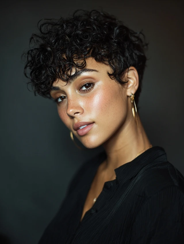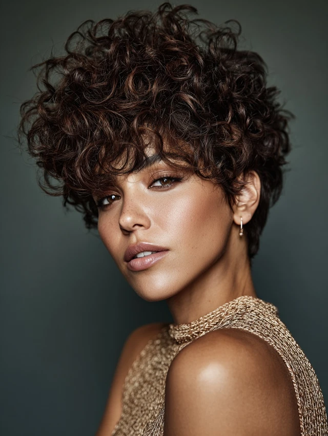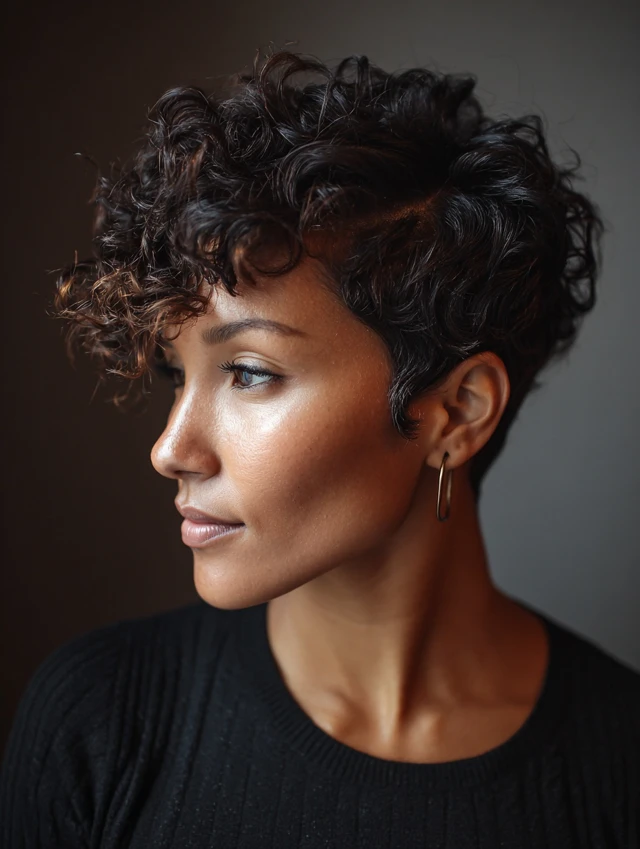Curly pixie cuts enhance natural curl patterns while keeping the hair short and structured. This prevents curls from looking heavy or weighed down, giving a lively, bouncy effect.