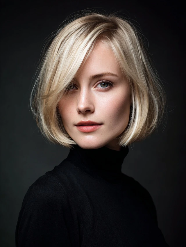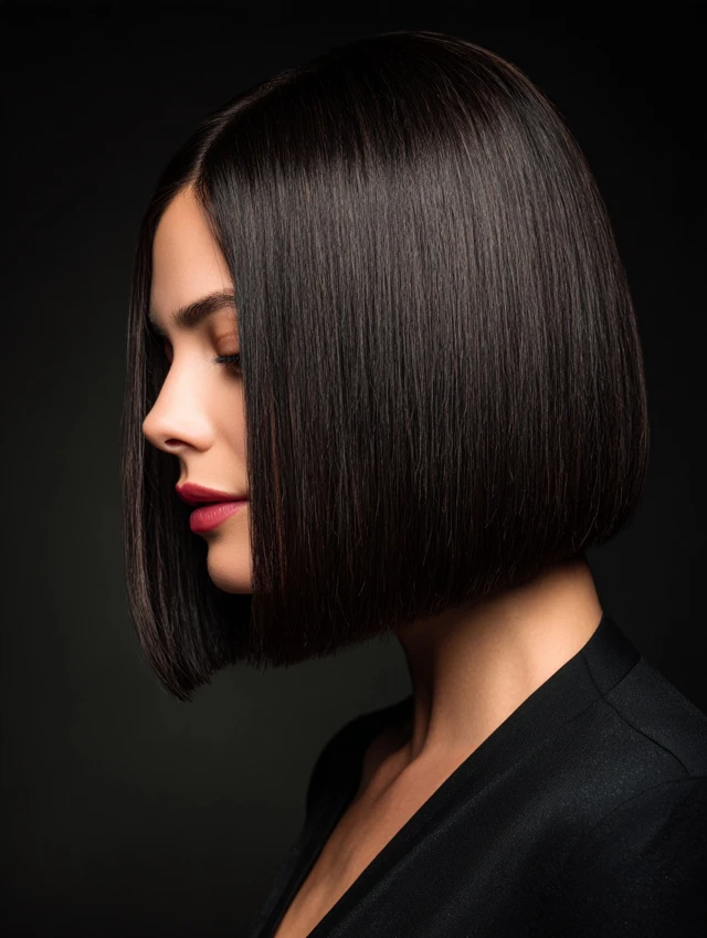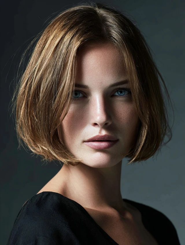 A straight-across blunt bob creates the illusion of thickness at the ends. Ideal for oval, heart-shaped, or round faces, it frames features elegantly. Fine hair holds this style well, especially with a precision cut.