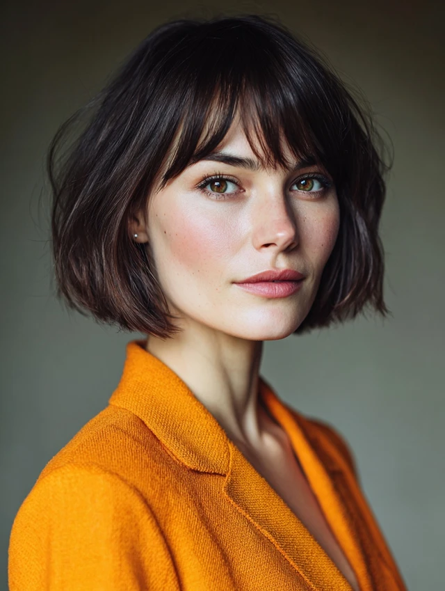 Adding side-swept bangs softens facial features and adds depth to fine hair. Works for oval, heart-shaped, or square faces. The bangs draw attention to the eyes while framing the face.