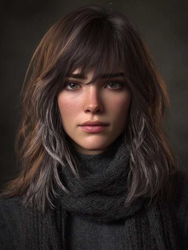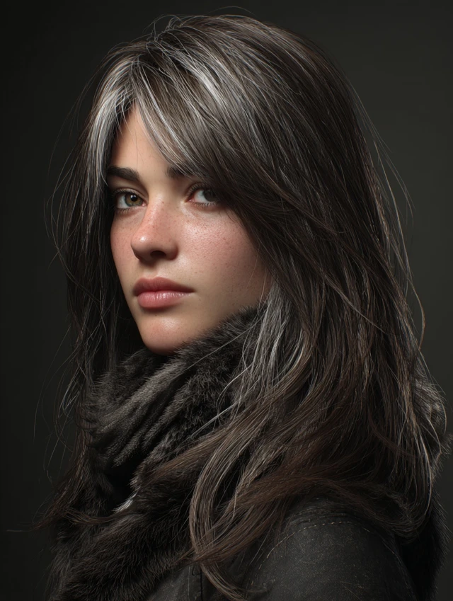 Perfect for modern, chic winter looks. Highlights subtle texture and shine. Adds a fresh, sophisticated twist to standard brunette shades.