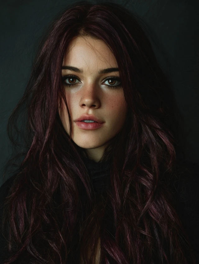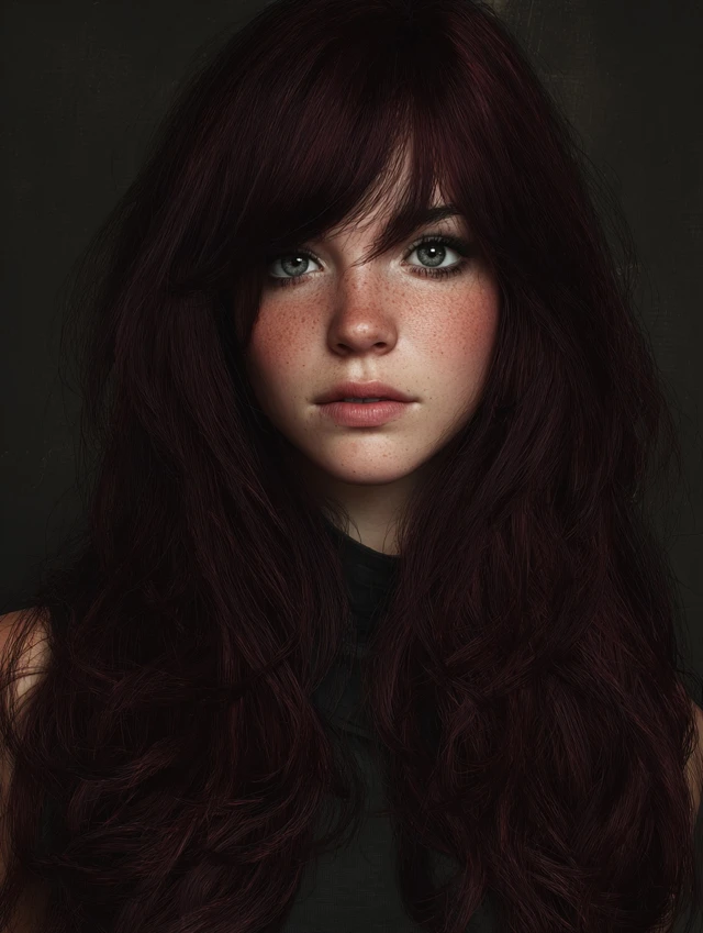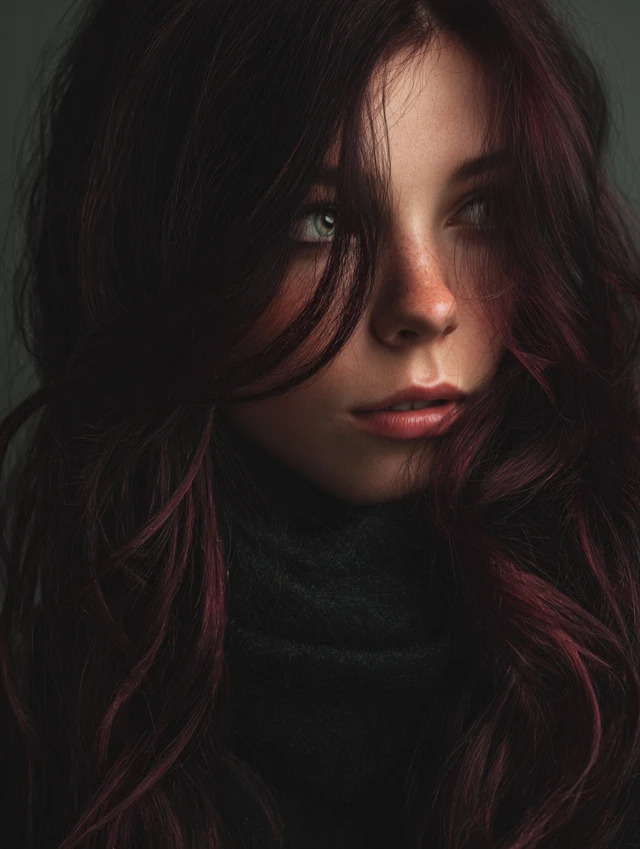 A deep burgundy or wine tone over brown hair adds richness and drama. Ideal for oval, heart-shaped, or square faces. Medium to long hair works best.
