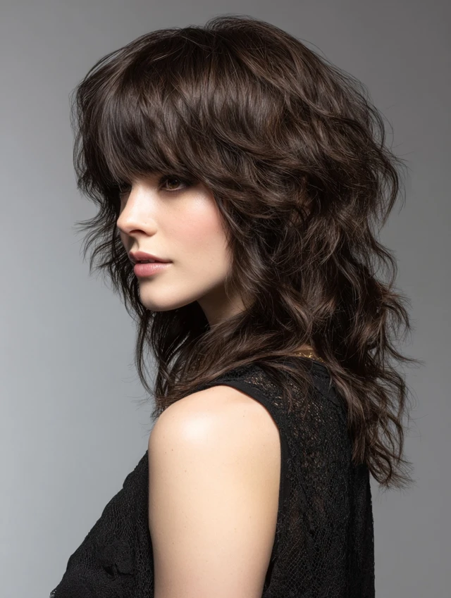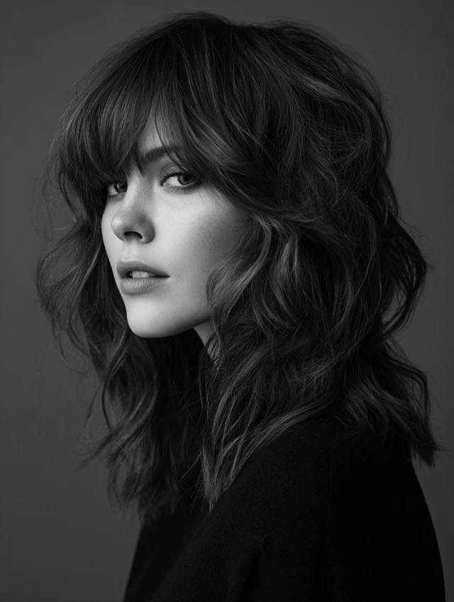 Incorporates soft waves into the layered wolf cut. Suits oval, square, and heart-shaped faces. Medium to thick hair holds waves beautifully, adding natural movement.