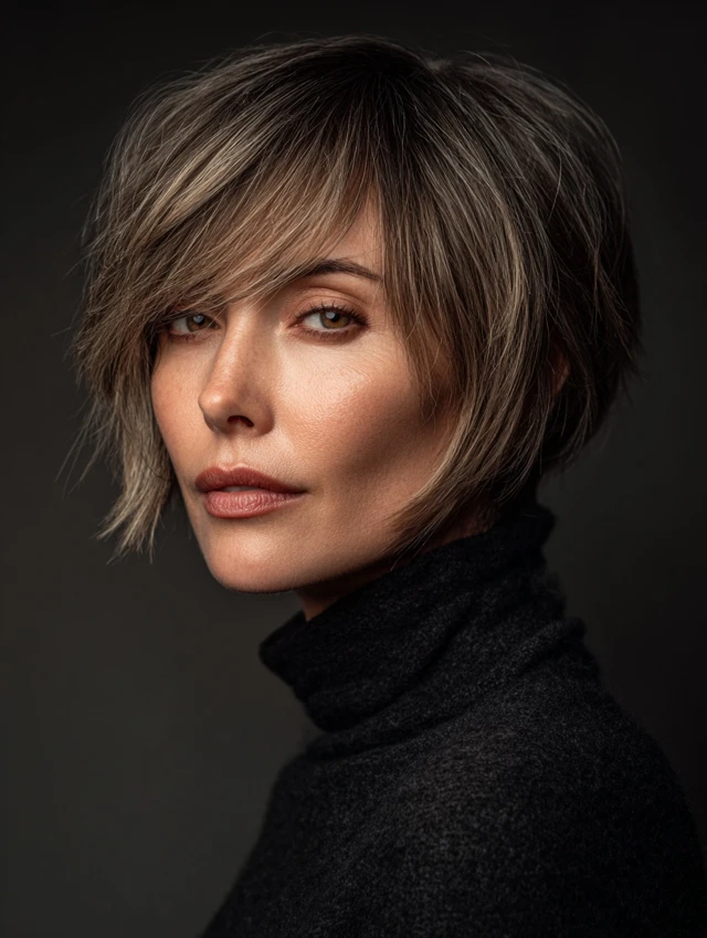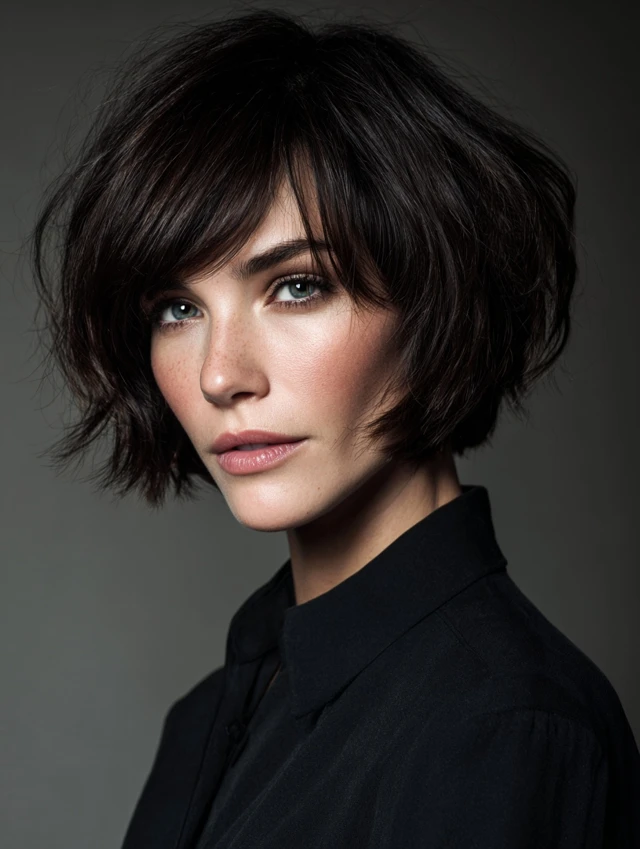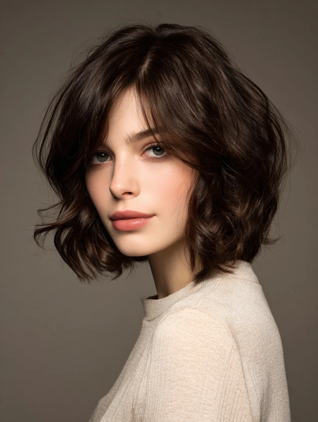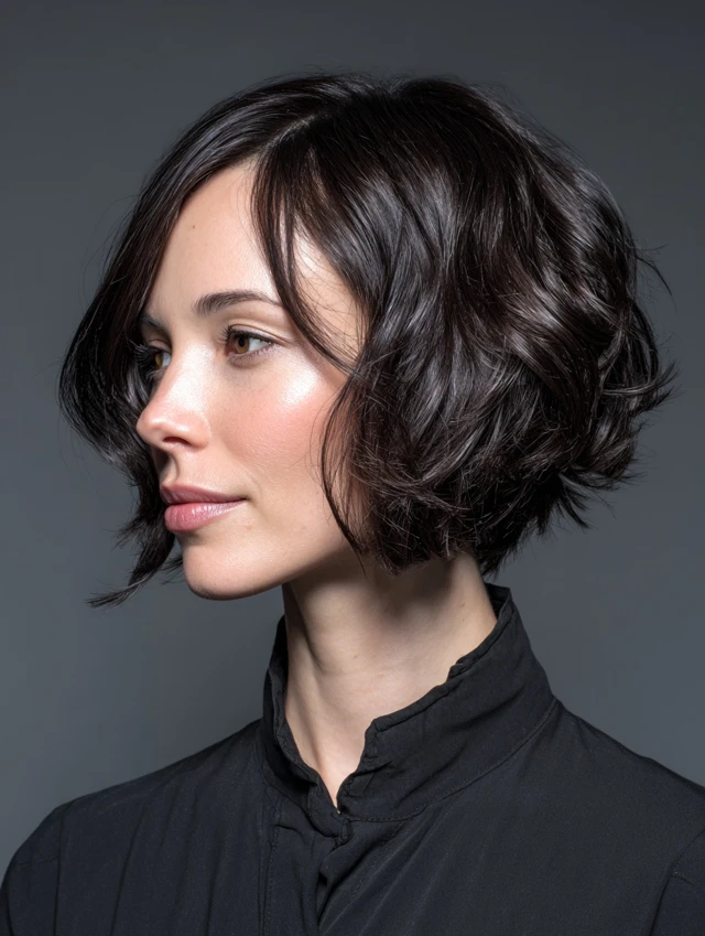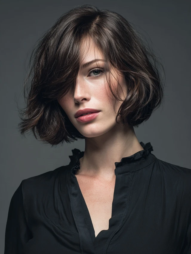 A bob with subtle or choppy layers adds dimension and frame. Works for oval, square, and heart-shaped faces. Straight or wavy hair adapts well.