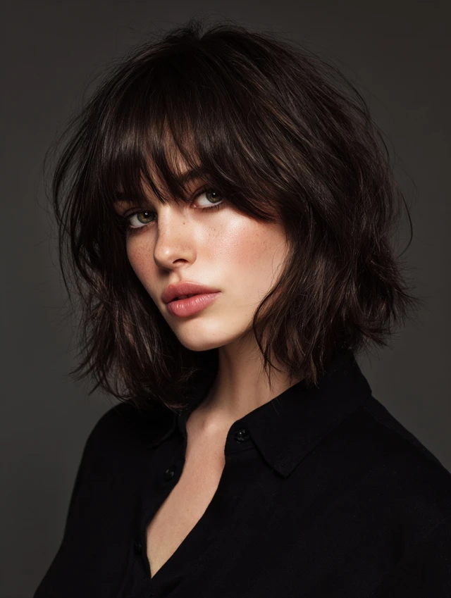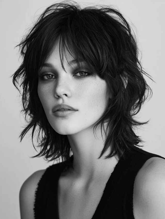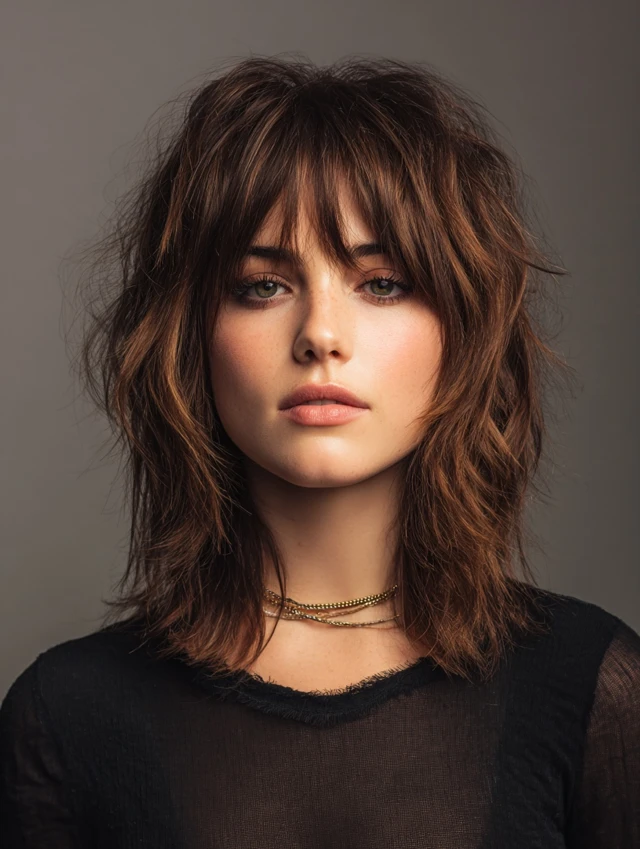 Choppy, uneven layers create texture and a relaxed, edgy vibe. Suits oval, heart-shaped, and round faces. Medium to thick hair works best.