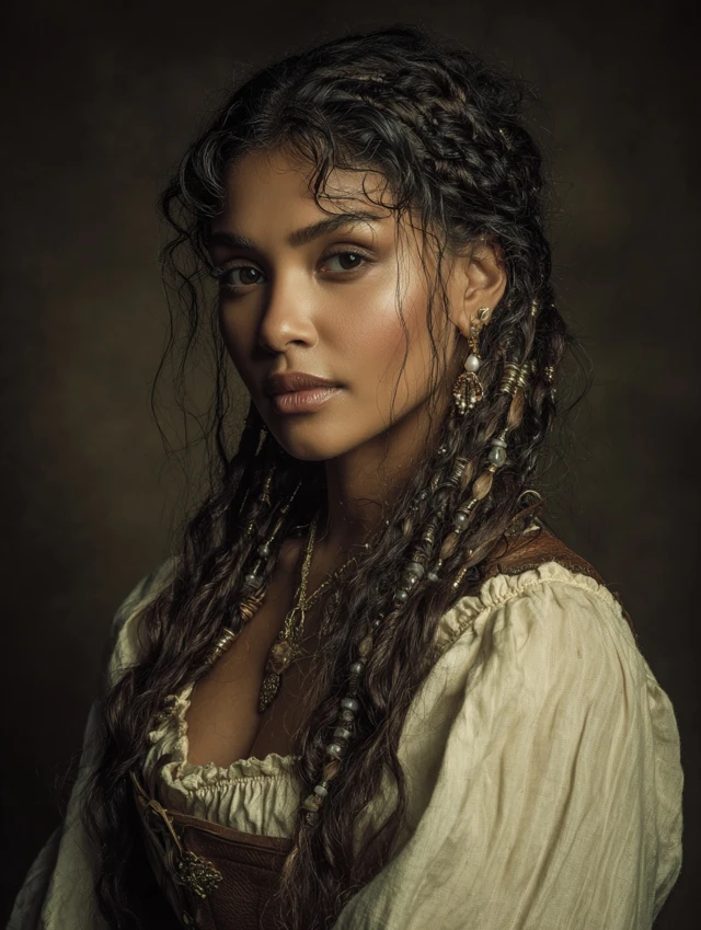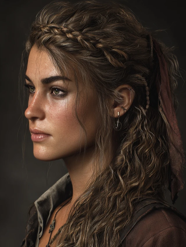 A braided crown along the hairline adds a daring pirate touch. Works for oval and heart-shaped faces, framing features beautifully. Medium to long hair holds braids best.